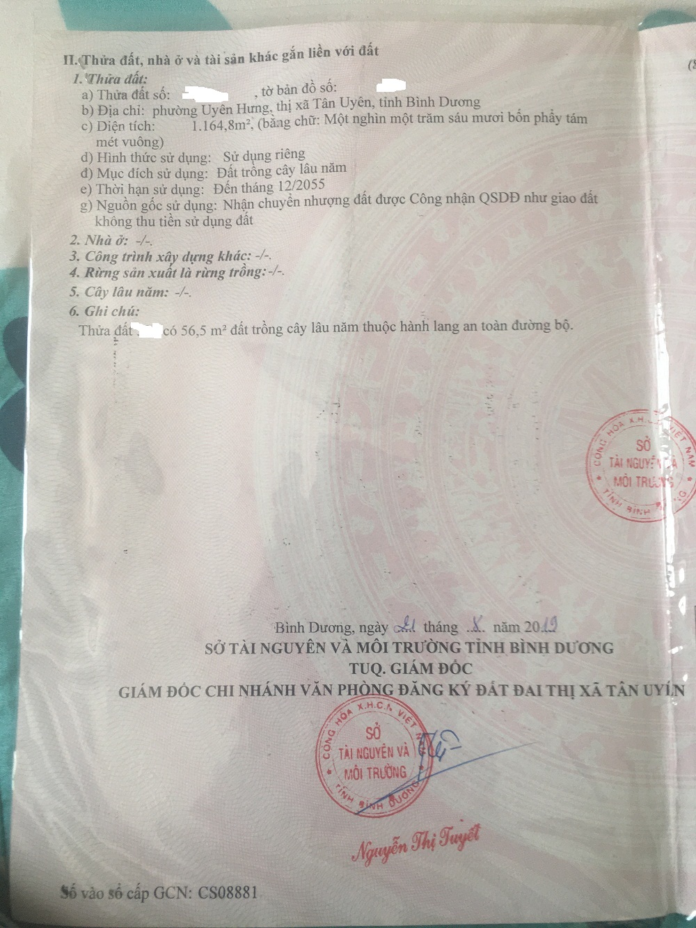 Lô đất có diện tích 1.164m2 (Ngang 11,3*100m), đã có 200m2 thổ cư: