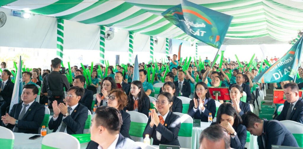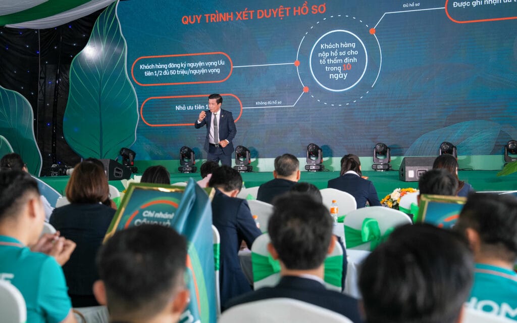 Một trong những khoảnh khắc đáng mong đợi nhất chính là phần chia sẻ từ ông Tô Duy Chinh – Giám đốc Khối Kinh doanh của Kim Oanh Land. Với phong thái nhiệt huyết, ông đã tiếp lửa cho hơn 500 chiến binh kinh doanh bằng những thông tin chuyên sâu về giỏ hàng sản phẩm, và chính sách bán hàng hấp dẫn. Ông nhấn mạnh rằng, với lợi thế về vị trí, quy hoạch, tiện ích và pháp lý vững chắc, K-Home New City không chỉ là cơ hội cho khách hàng mà còn là cơ hội để đội ngũ kinh doanh bứt phá doanh số mạnh mẽ.