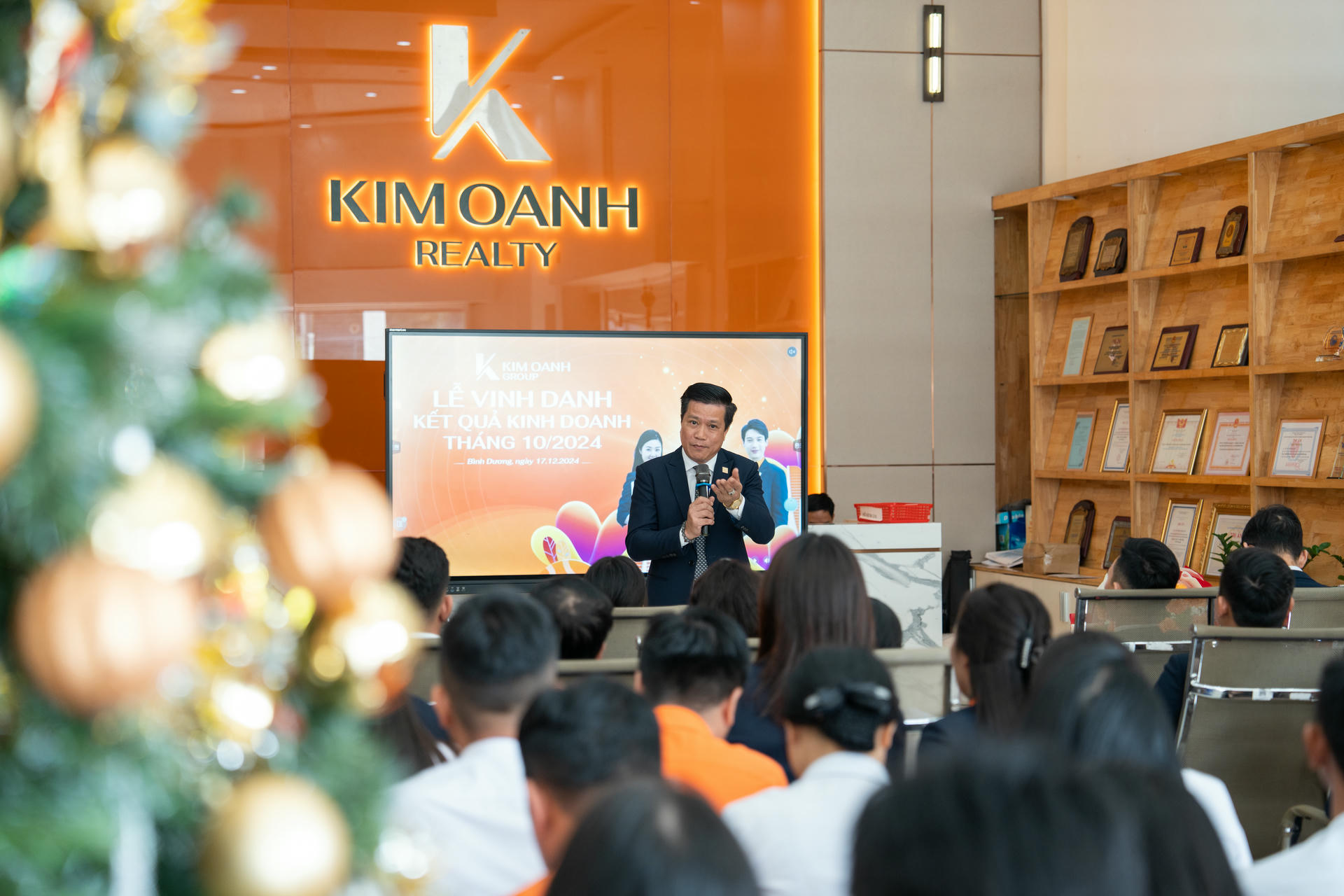 Trong khuôn khổ Lễ vinh danh, ông Tô Duy Chinh – Giám đốc Khối Kinh doanh cho biết đội ngũ kinh doanh đã rất nỗ lực trong cả năm 2024 để mang về những kết quả đáng khích lệ. Điều này được thể hiện rõ nét qua kết quả thi đua hàng tháng của toàn hệ thống với 6 chi nhánh. Hội đồng Quản trị, Ban Tổng Giám đốc Kim Oanh Group rất trân trọng và ghi nhận sự cố gắng tuyệt vời của tất cả các chuyên viên kinh doanh cũng như các bộ phận hỗ trợ. “Mong rằng tất cả chúng ta sẽ giữ vững và tiếp tục phát huy tinh thần phấn đấu để đạt được nhiều kết quả bứt phá hơn nữa trong năm 2025” – ông Chinh kỳ vọng.