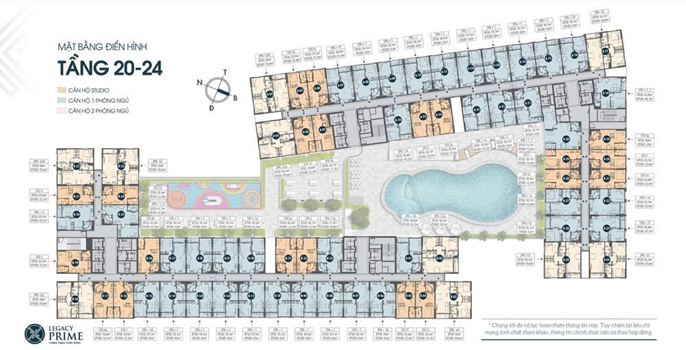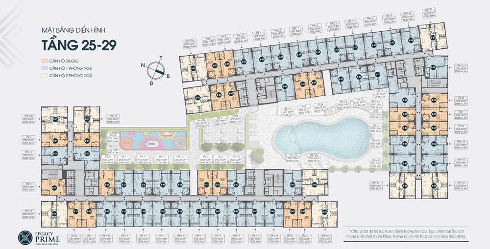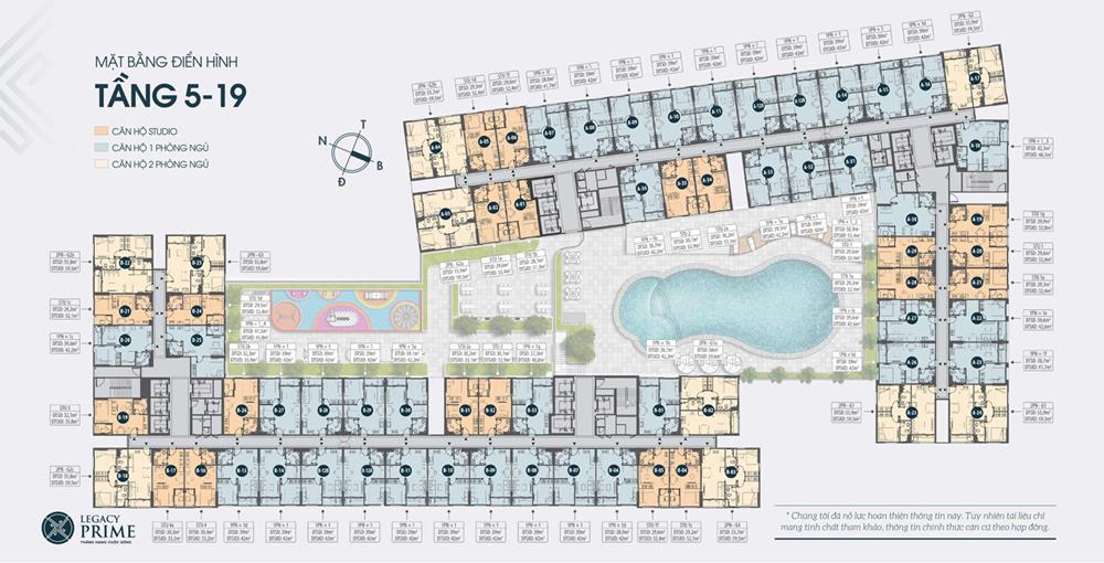 Mặt bằng căn hộ Legacy Prime được xây dựng trên quỹ đất rộng 1ha, với mật độ xây dựng chỉ khoảng 40%, thiết kế dự án gồm 2 block cao tầng với 29 tầng nổi và 1 tầng hầm với 1.800 căn hộ và shophouse, diện tích dao động từ 32m2 đến 59.5m2. Mỗi căn hộ tại dự án đều được thiết kế đảm bảo thích hợp với mọi nhu cầu của khách hàng.