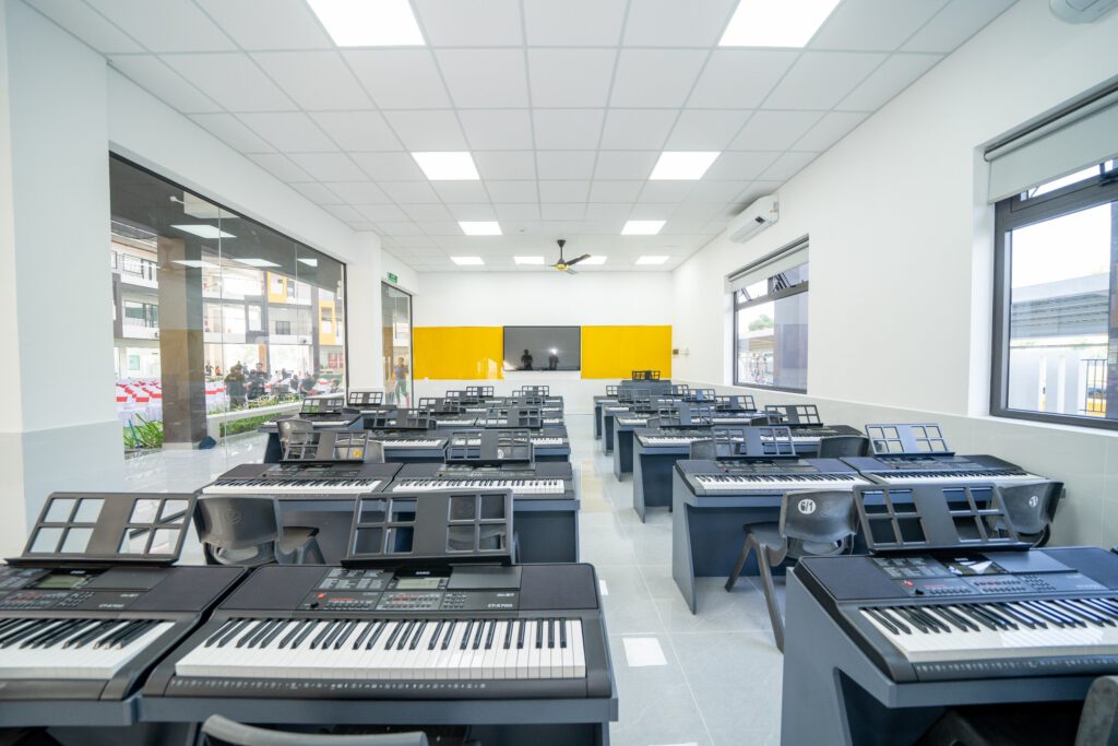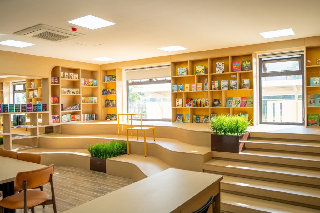 Trường bao gồm nhiều khu chức năng riêng biệt như phòng học thực hành, gym, nghệ thuật, hồ bơi nước nóng, sân thi đấu, khu vui chơi liên hoàn… Đây là một trong những ngôi trường hiện đại nhất tại Bình Dương, mang đến môi trường học tập và phát triển toàn diện cho học sinh.