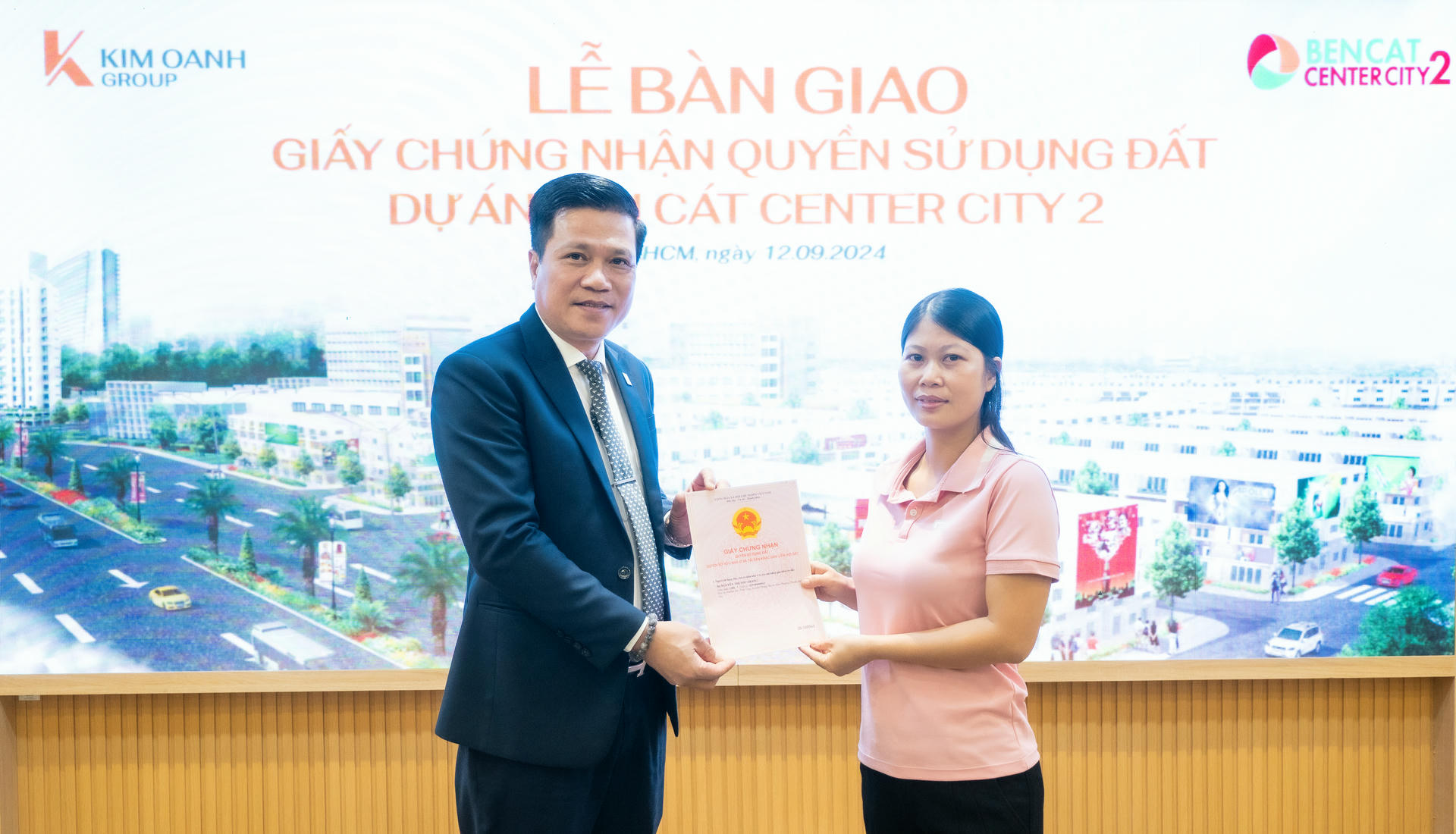 Sáng 12/9, Kim Oanh Group tiếp tục khẳng định uy tín và cam kết mạnh mẽ với khách hàng khi tổ chức lễ bàn giao Giấy chứng nhận Quyền sử dụng đất dự án Bến Cát Center City 2. Sự kiện diễn ra tại trụ sở Tập đoàn (TP.HCM) và văn phòng Bình Dương với 158 khách hàng tham gia nhận bàn giao trong đợt 1.