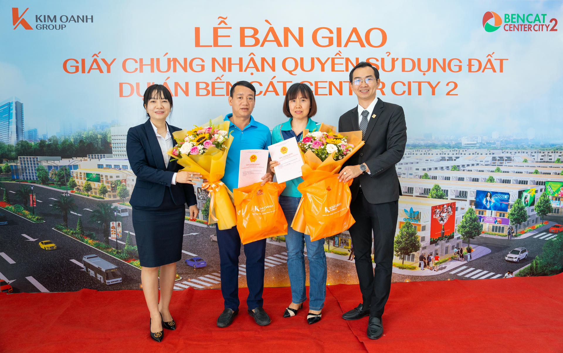 Trong suốt 16 năm hoạt động vừa qua, Kim Oanh Group luôn tâm niệm “Thành công của khách hàng, thành công của đối tác cũng là thành công của chính mình”. Vì thế, mọi cam kết với khách hàng đều được Tập đoàn cố gắng thực hiện. Minh chứng là trước Bến Cát Center City 2, Kim Oanh Group cũng đã trao Giấy chứng nhận Quyền sở hữu nhà và Giấy chứng nhận Quyền sử dụng đất tại nhiều dự án như Golden Future City, The EastGate, Golden Center City…