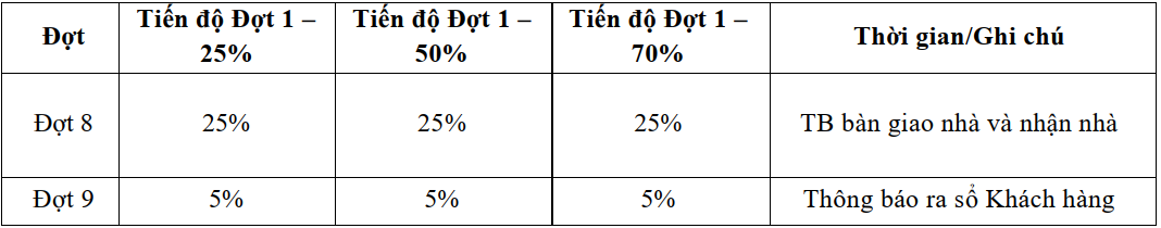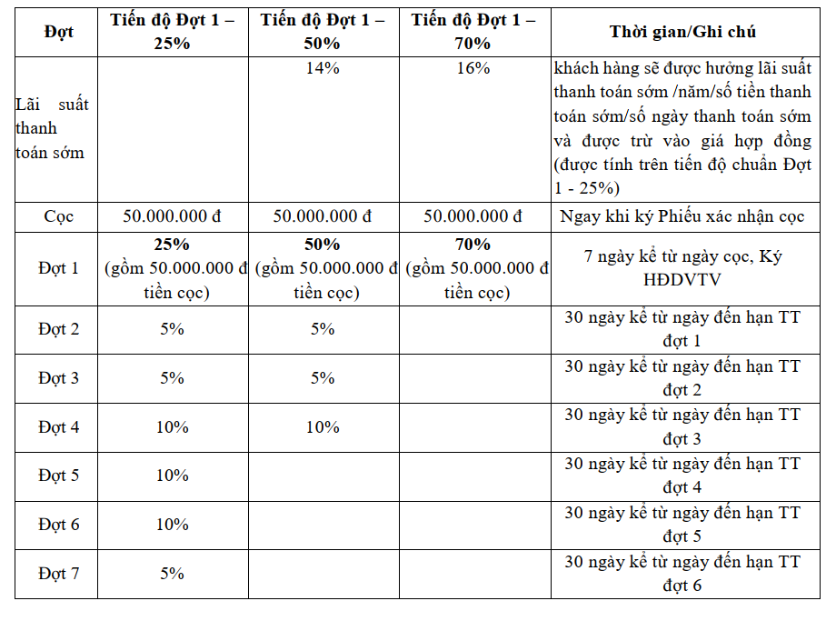 - Sau khi thanh toán đợt 1 và ký hợp đồng, nếu khách hàng muốn thanh toán sớm các đợt còn lại: