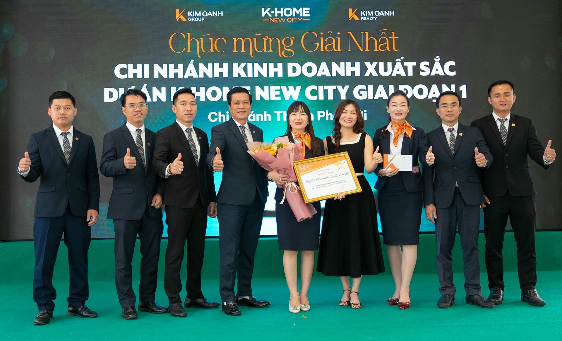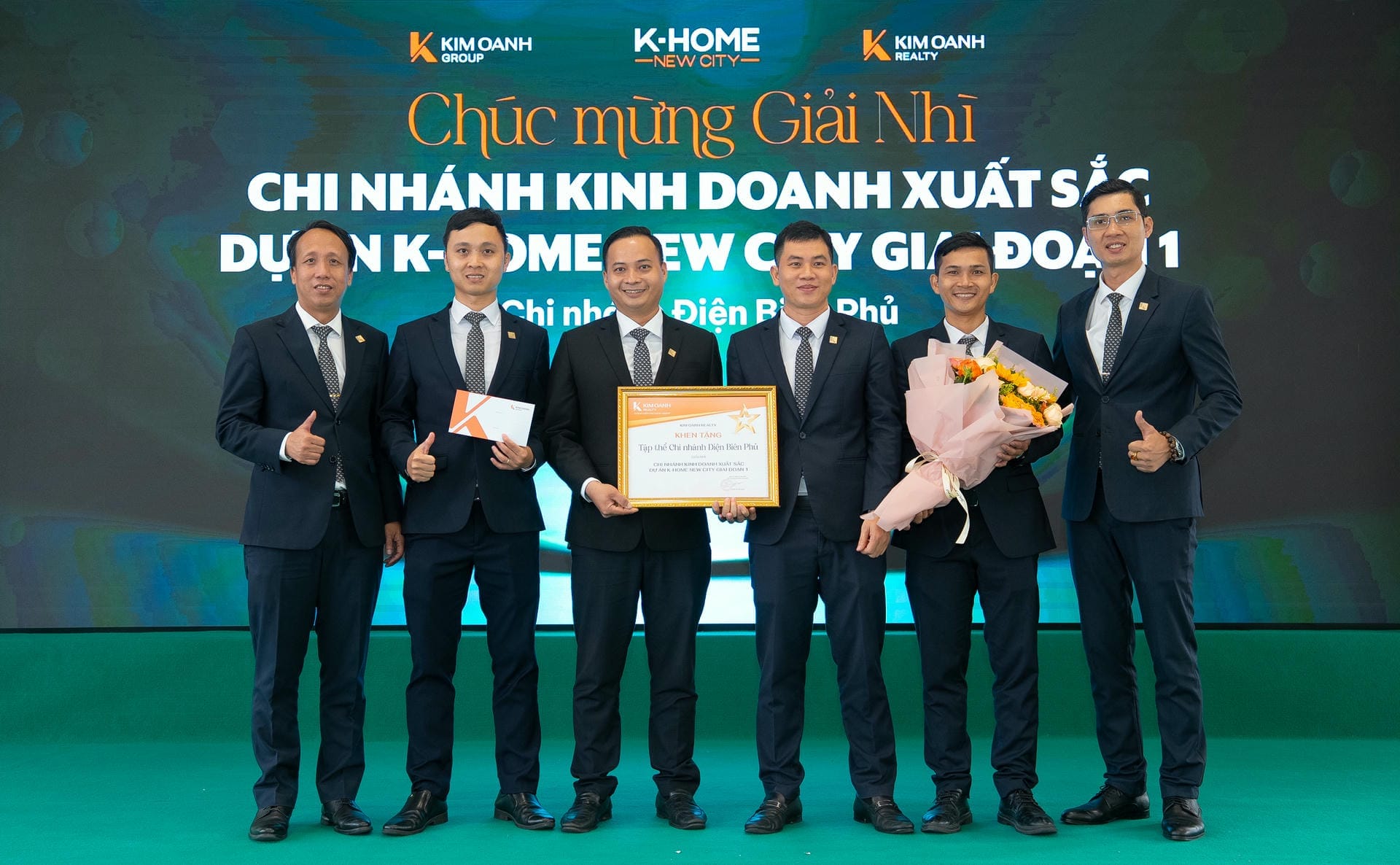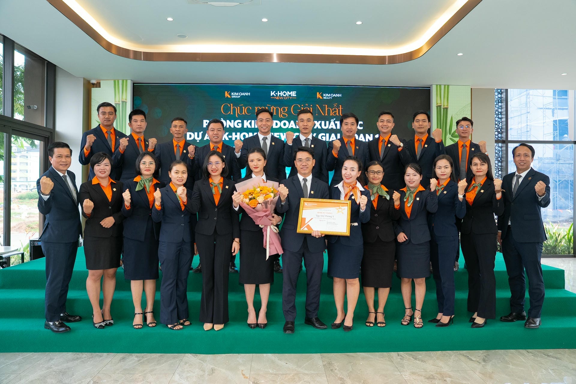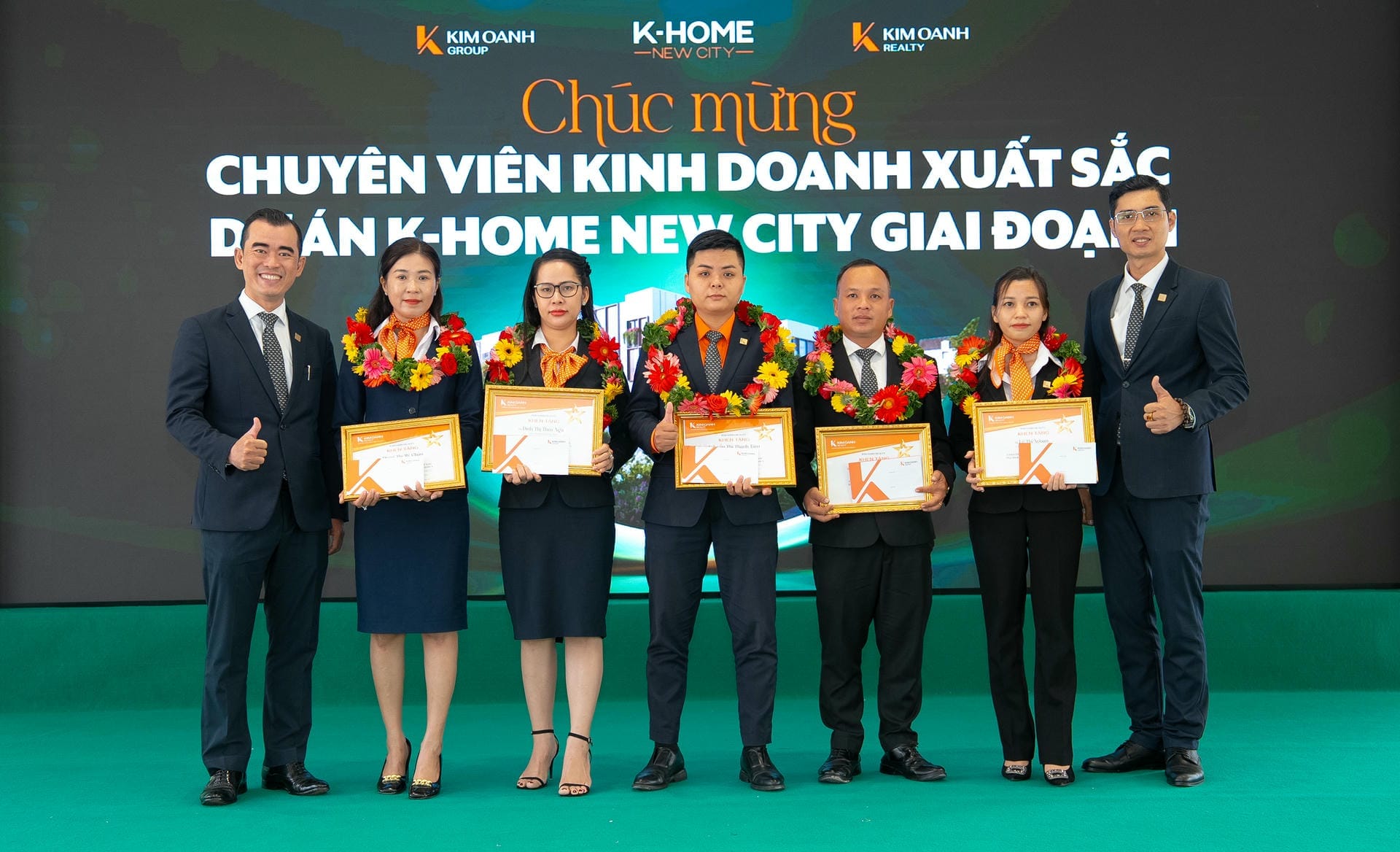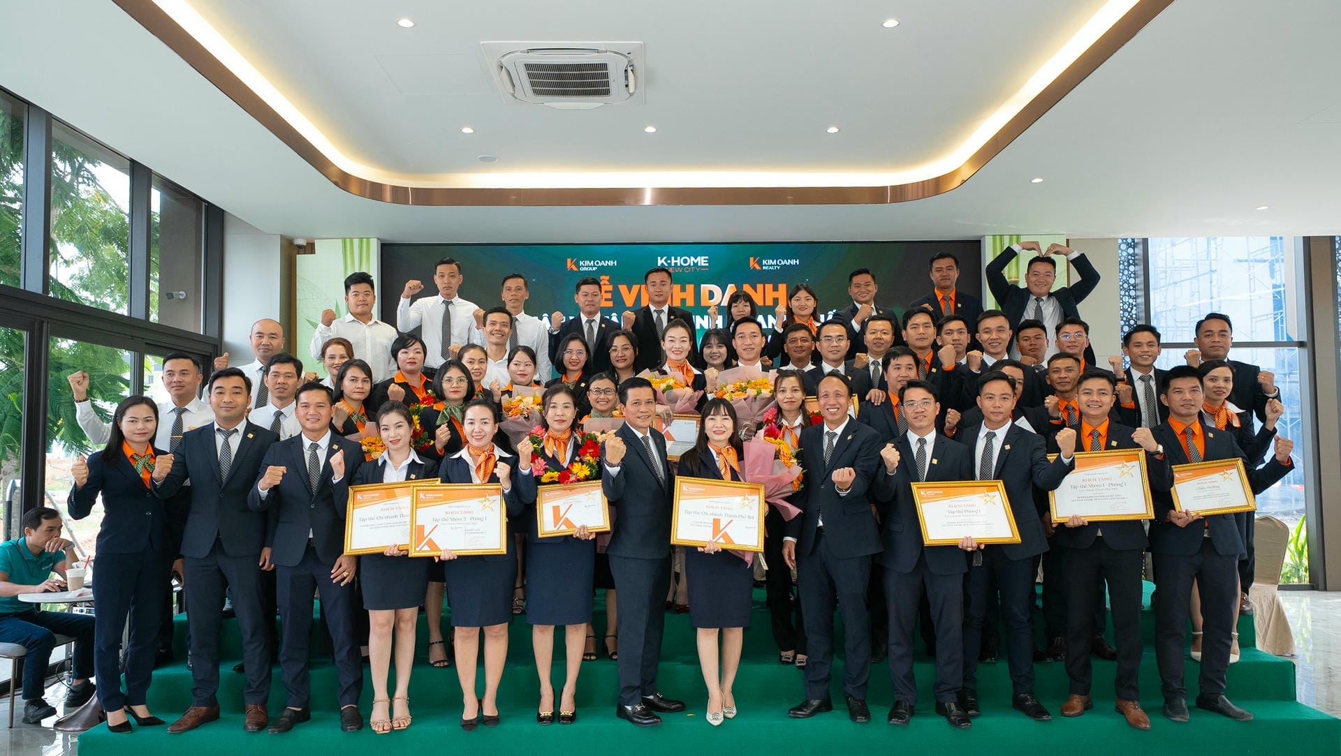 Nhóm 1 (phòng 1, chi nhánh Thành Phố Mới) được vinh danh giải Nhất hạng mục Nhóm kinh doanh xuất sắc dự án K-Home New City giai đoạn 1, giải thưởng được trao bởiông Nguyễn Lương Thọ và ông Trịnh Thanh Tuấn.