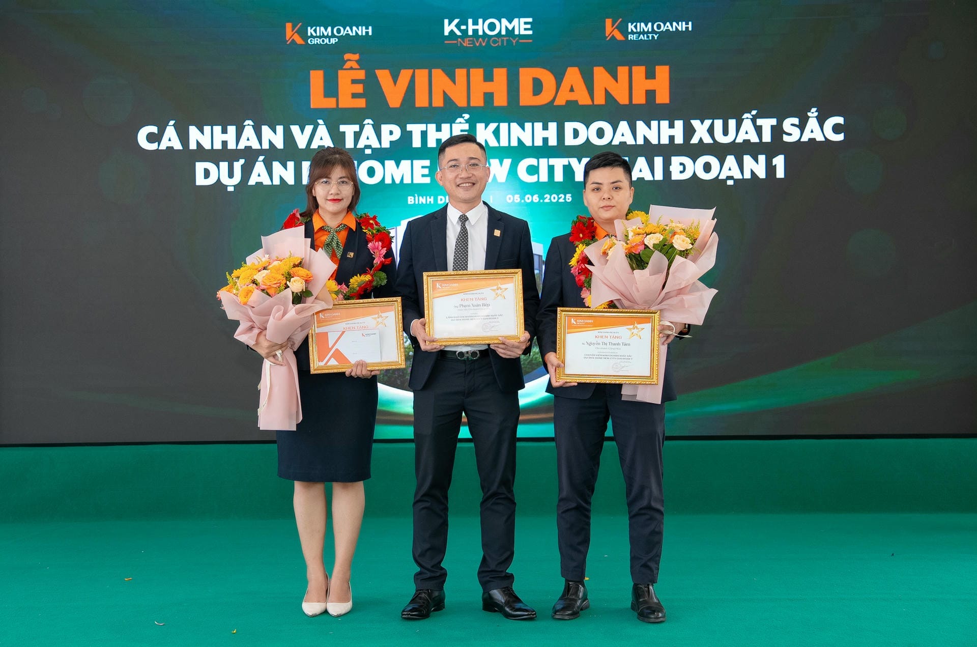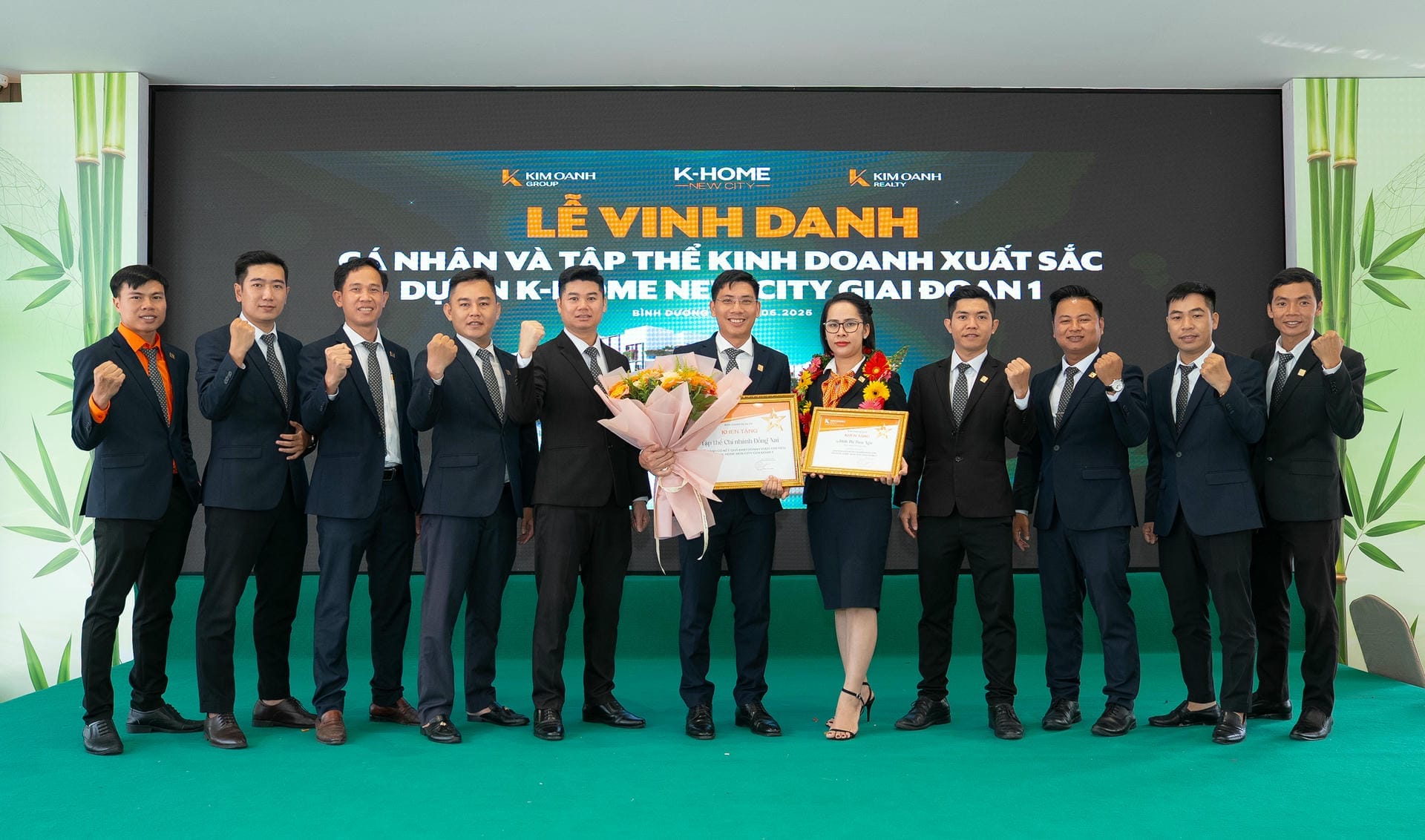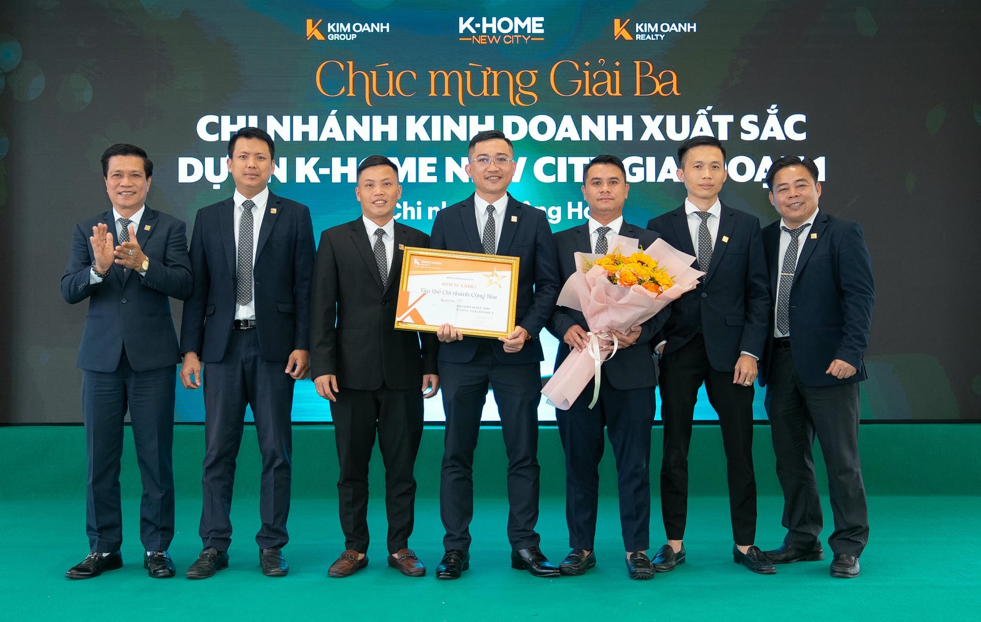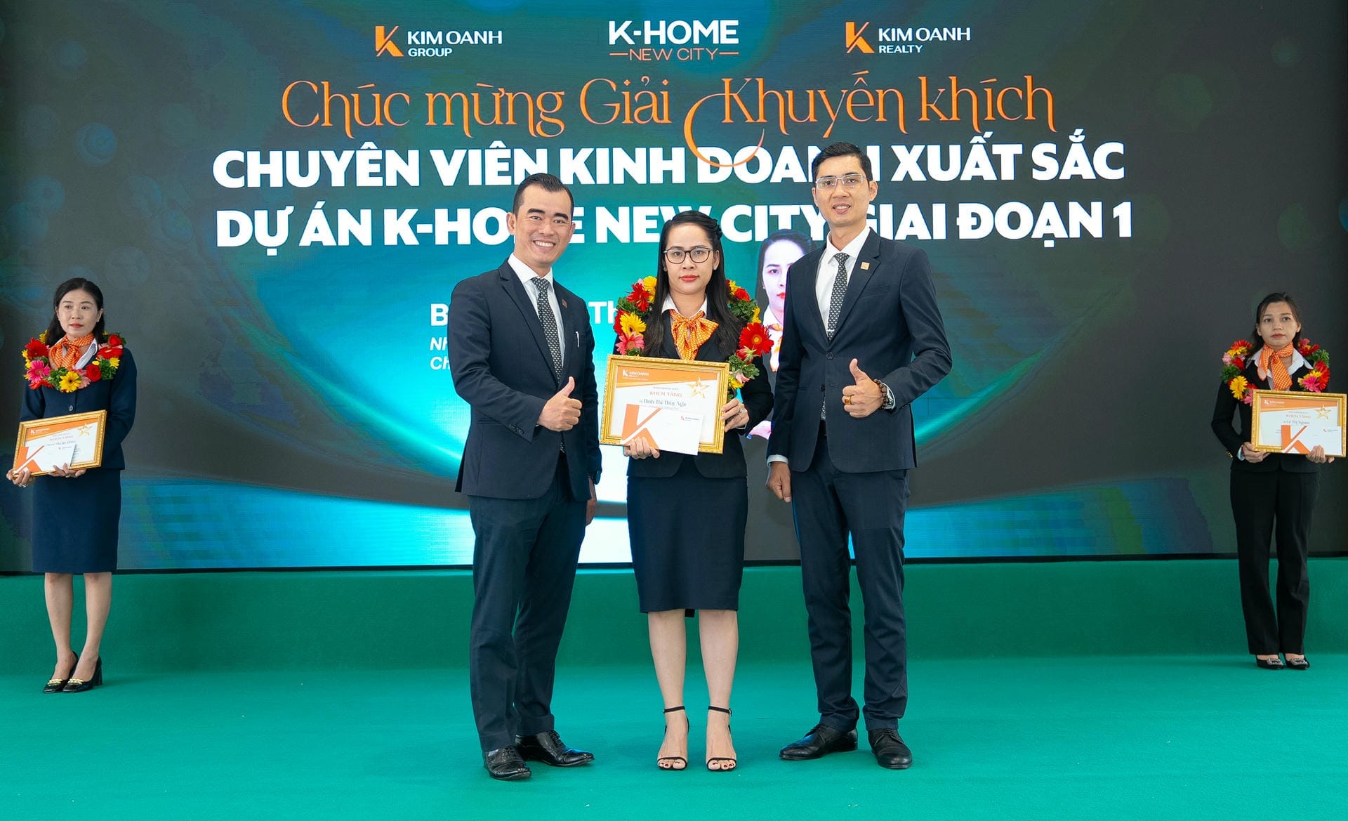 Nhóm 1 (phòng 1, chi nhánh Thành Phố Mới) được vinh danh giải Nhất hạng mục Nhóm kinh doanh xuất sắc dự án K-Home New City giai đoạn 1, giải thưởng được trao bởiông Nguyễn Lương Thọ và ông Trịnh Thanh Tuấn.