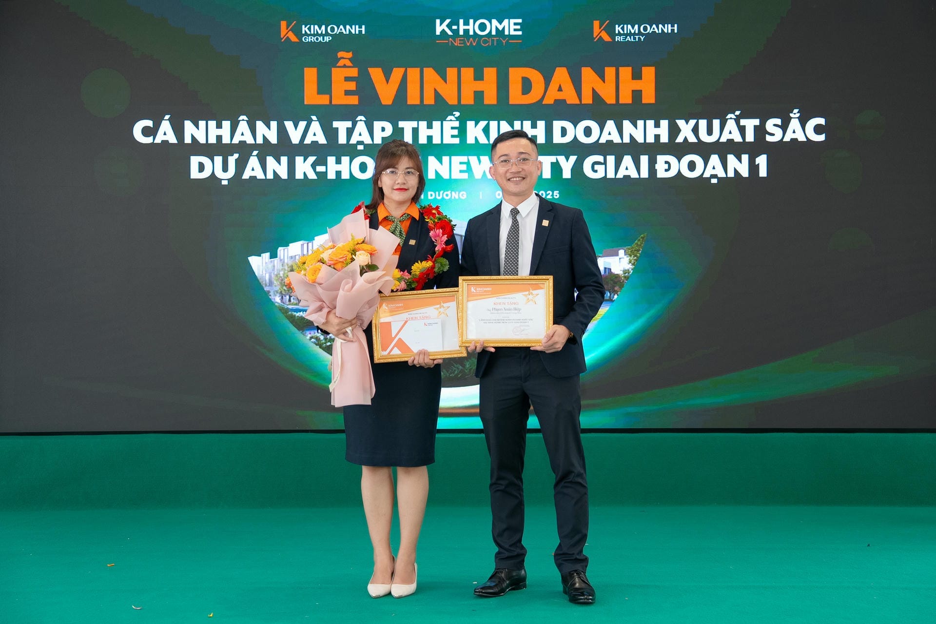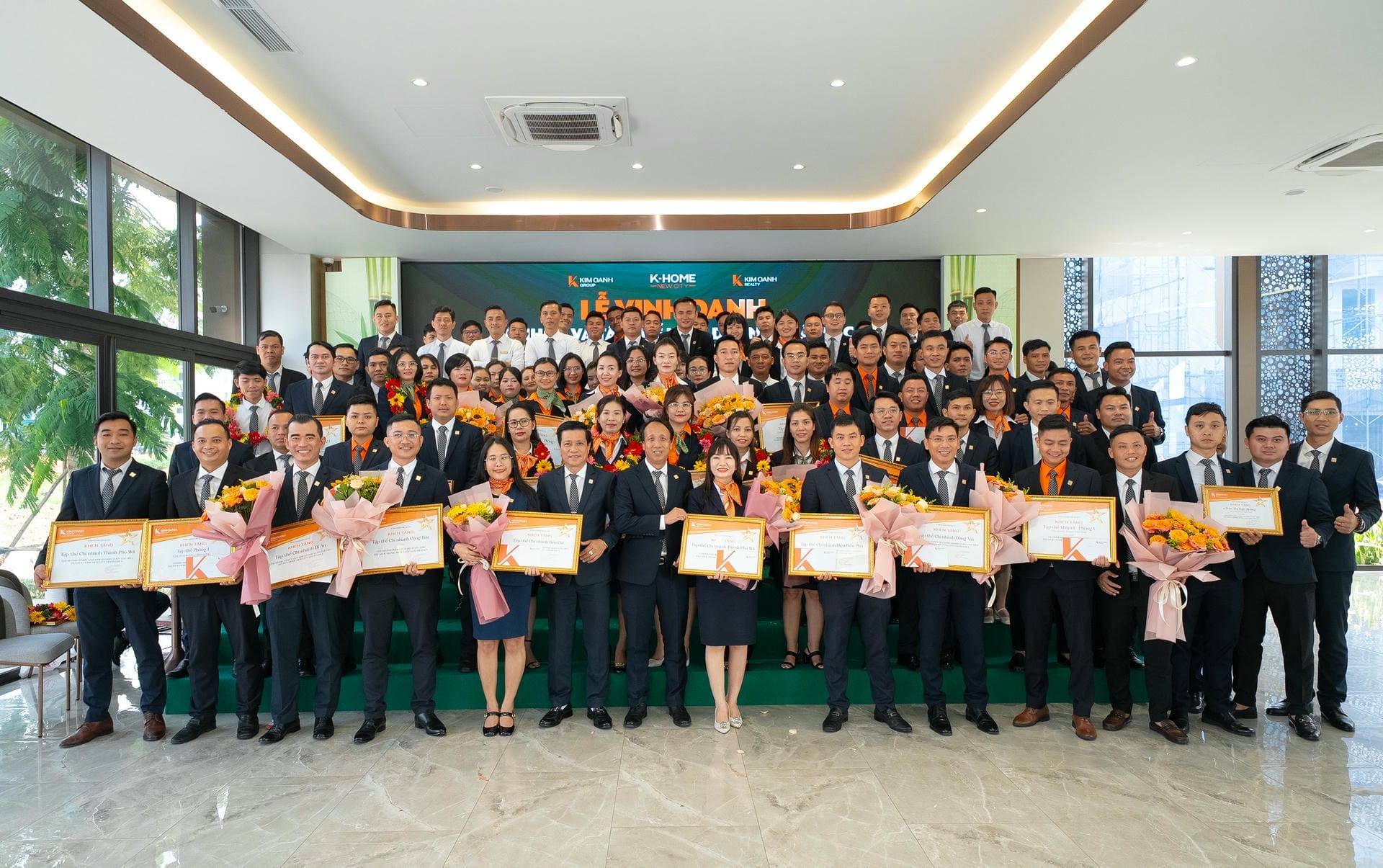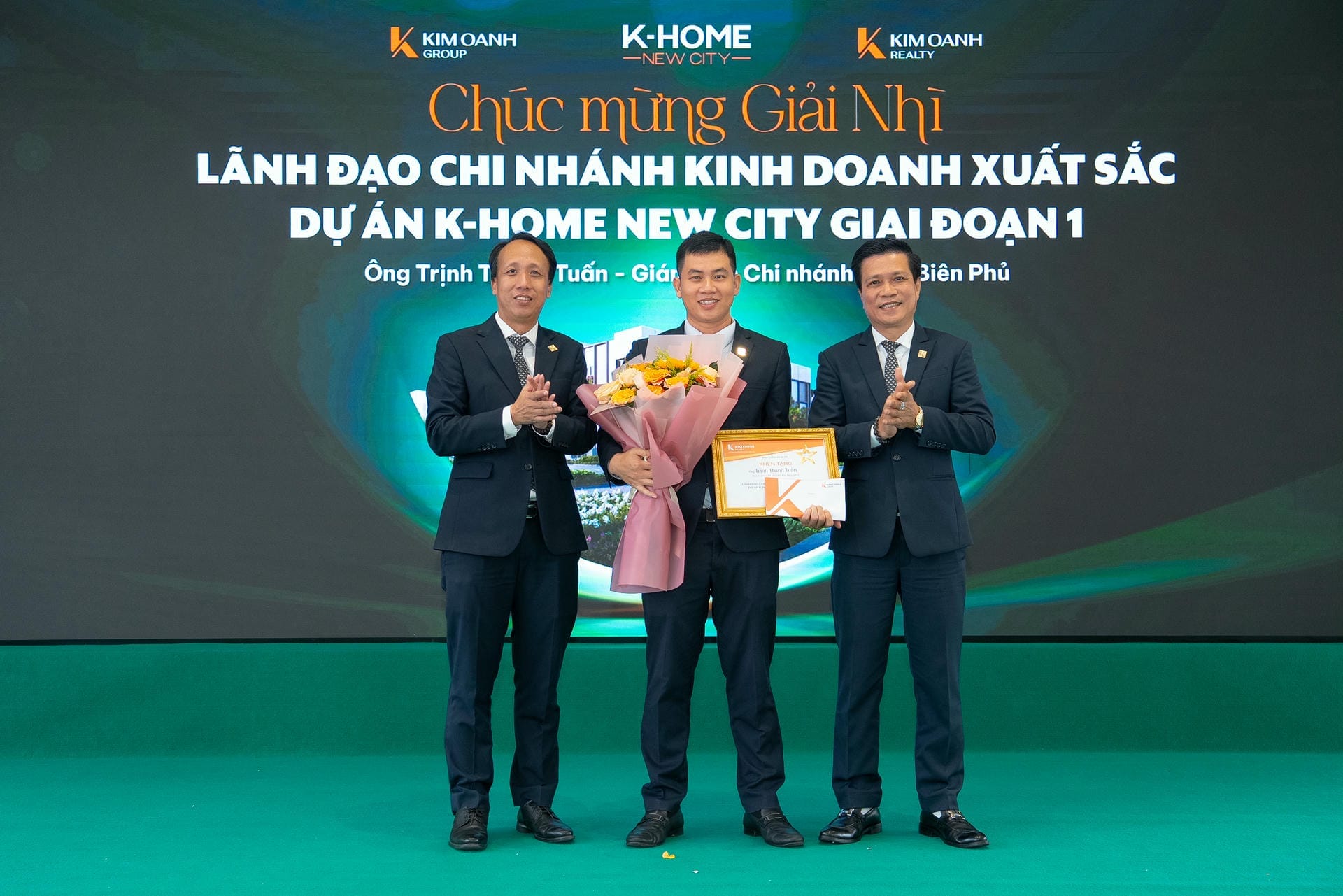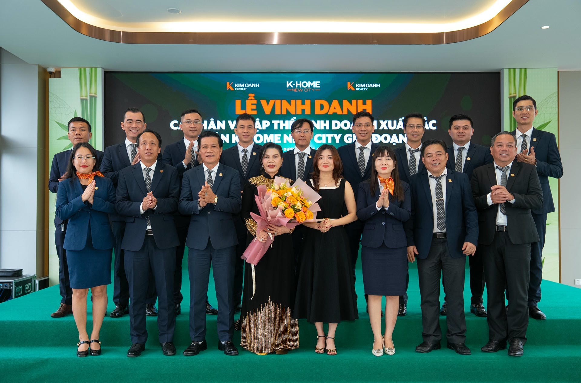 Nhóm 1 (phòng 1, chi nhánh Thành Phố Mới) được vinh danh giải Nhất hạng mục Nhóm kinh doanh xuất sắc dự án K-Home New City giai đoạn 1, giải thưởng được trao bởiông Nguyễn Lương Thọ và ông Trịnh Thanh Tuấn.